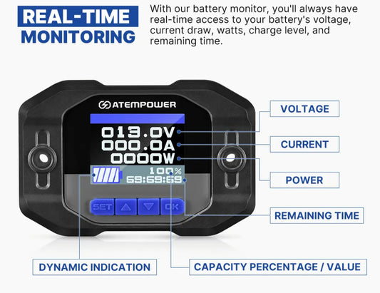 ATEM POWER 12V 200A High Precision Battery Capacity Indicator Monitor