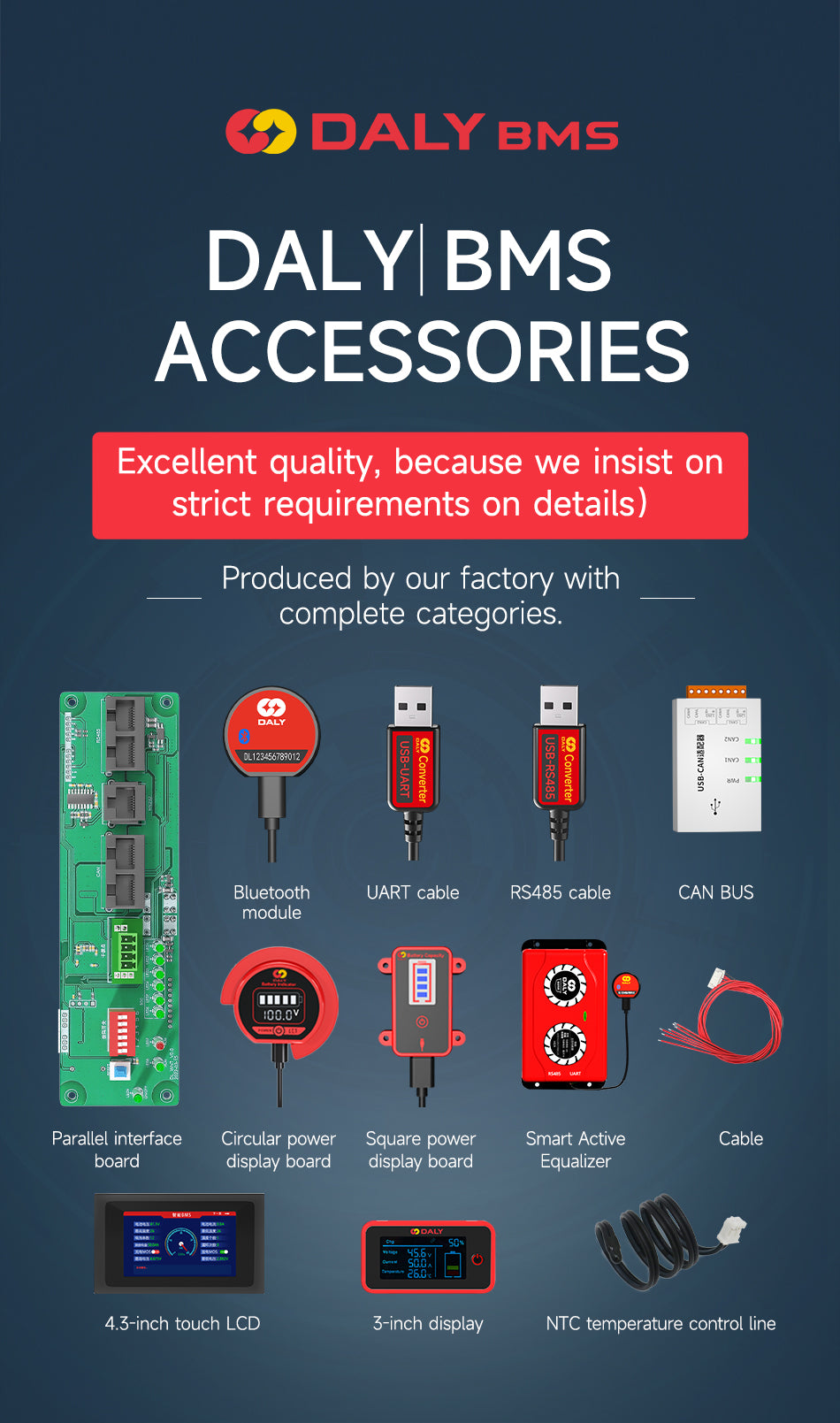 Daly smart bms Accessories (new series) 3s-24s 12v-72v 30a-500a BT UART RS485 CAN light board temperature sensor LCD display function