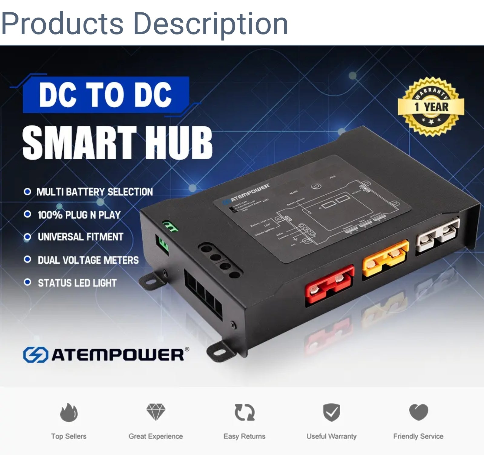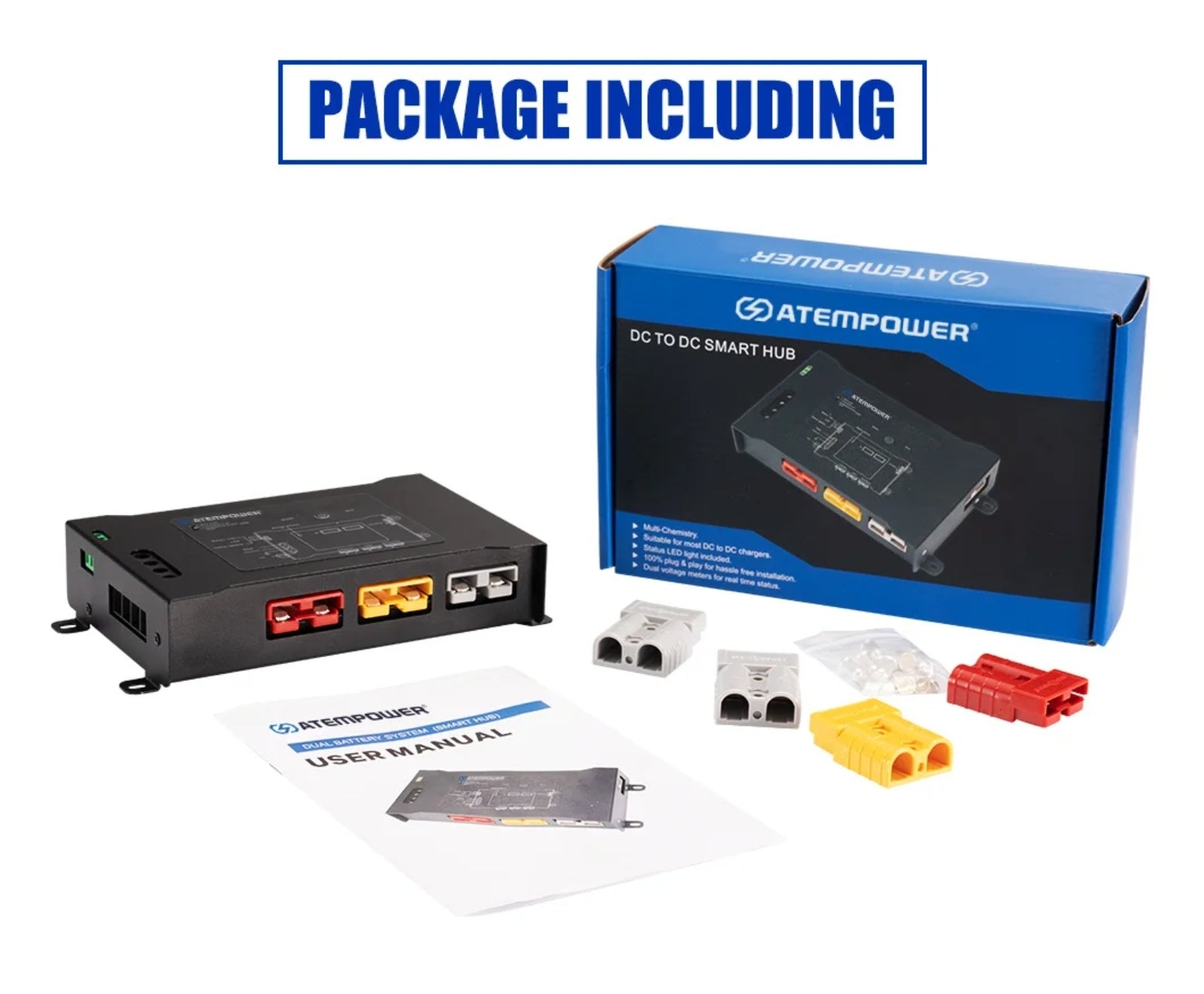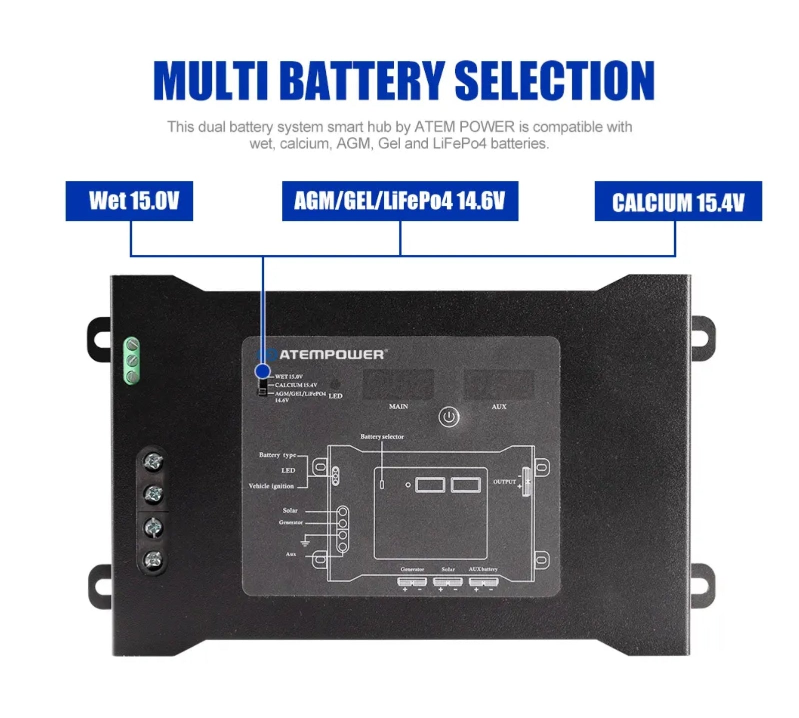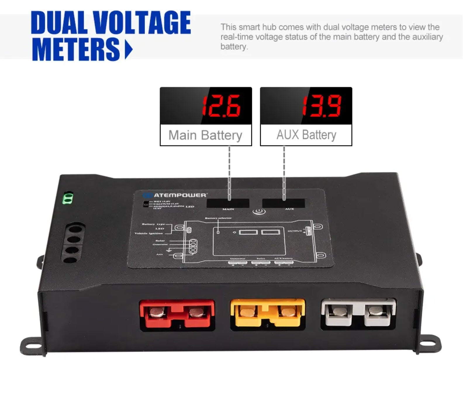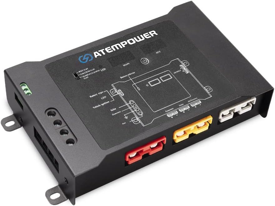 ATEM POWER DC to DC Smart Hub Dual Battery System Plug N Play with Status LED Light, Dual Voltage Meters, Suit for Wet Calcium AGM Gel LiFePO4 Batteries