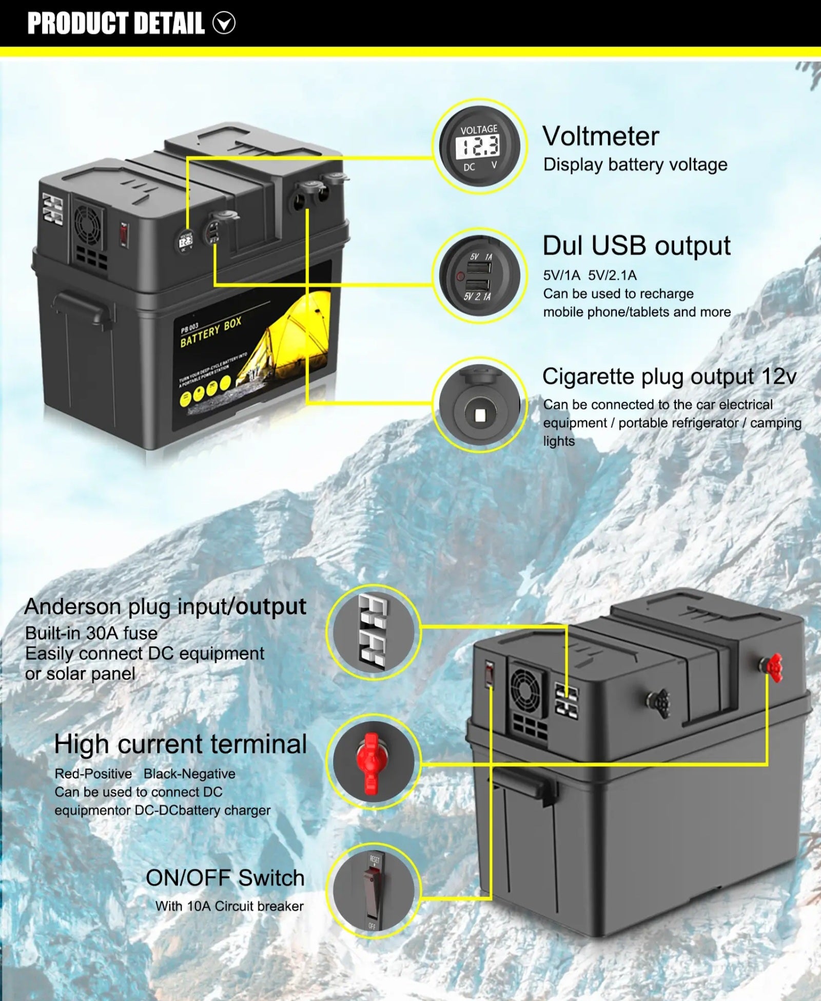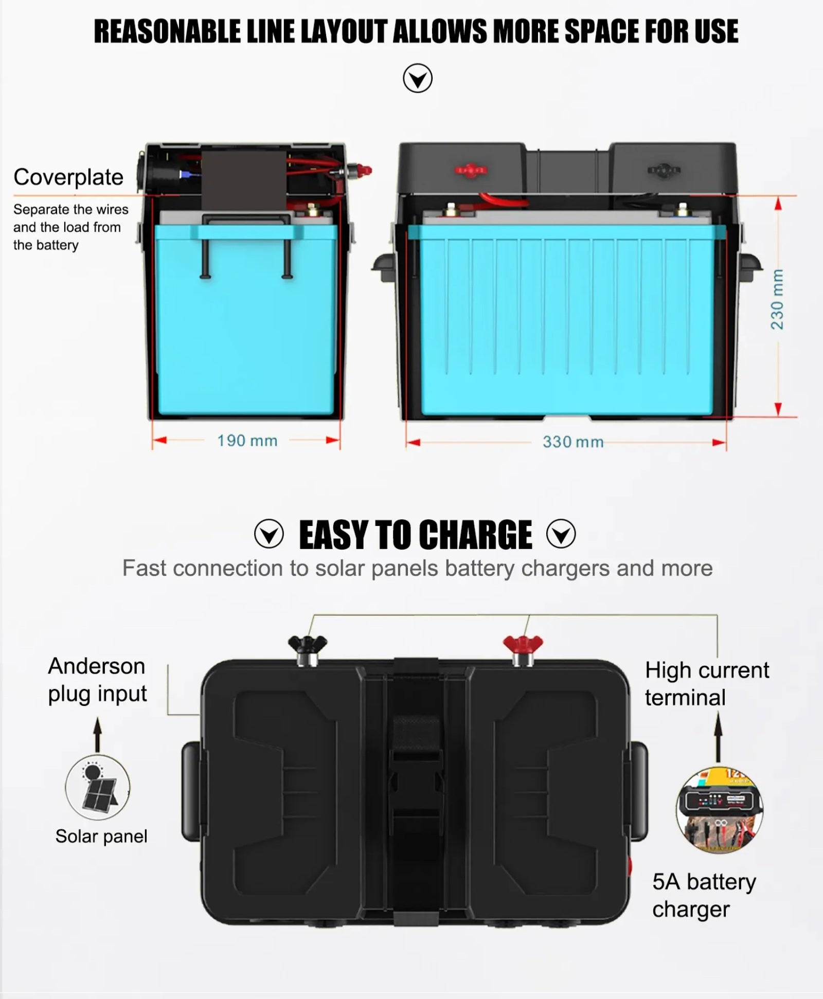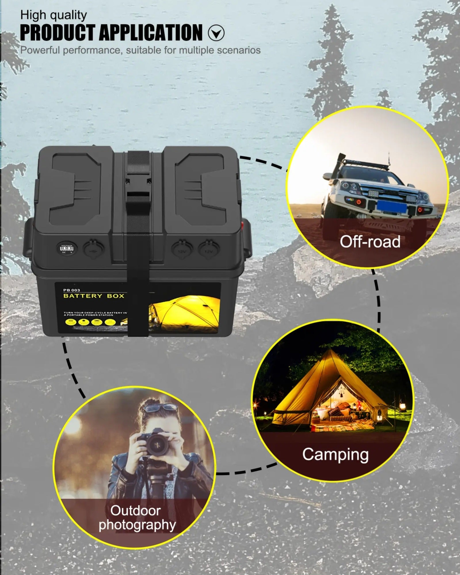 Battery Box 12V supply for Camping, Caravan, RV, Trailer, Boat Marine,Fishing and Home