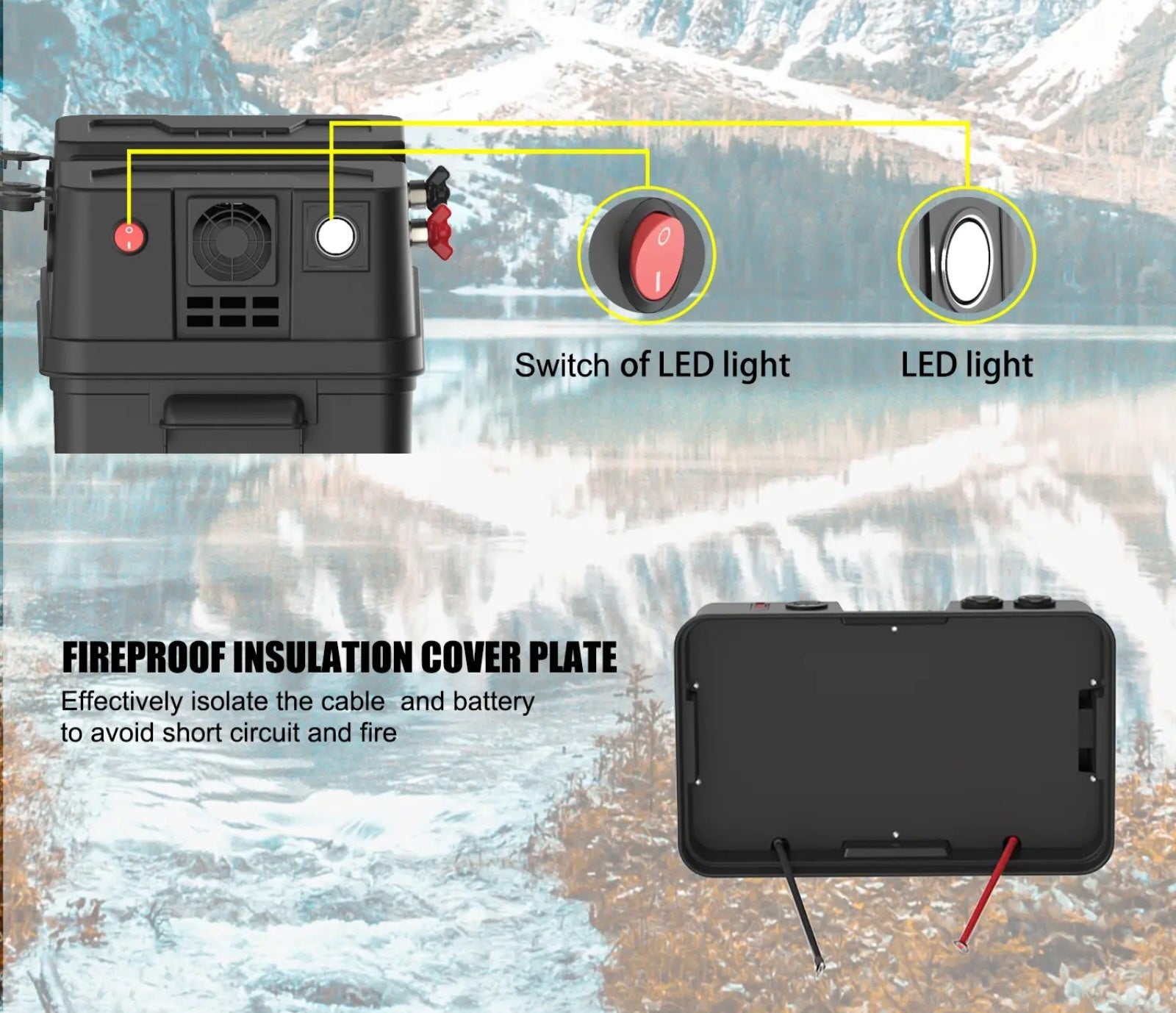 Can be used for household appliances. Input/Output 50A Anderson Plug, can also be used to charge your battery with solar panel or connect a inverter. The cooling fan can cool the entire working system, it will work for 2-3 seconds after turning on the switch. Dual usb can quickly charge mobile phones and other electronic products. Also have a built-in emergency light with switch. The box can take up to a 100Ah deep cycle battery (NOT INCLUDED). Smart Battery Box for Boat, Marine, Camping, RV,Caravanning, Camping, Trailer. BATTERY NOT INCLUDED!